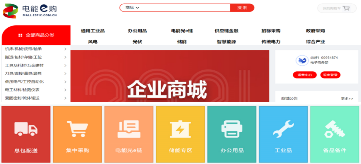 電能e購是國家電投集團唯一的電子商務(wù)平臺,是集團公司"一網(wǎng)一平臺"戰(zhàn)略中的電商采購平臺實施主體。"電能e購"新能源電商平臺服務(wù)涵蓋風(fēng)電、光伏、儲能、總包配送、集中采購、電能光e鏈、通用工業(yè)品、備品備件、綠電交通、綜合智慧能源、技術(shù)獵頭等內(nèi)容,為集團公司主要產(chǎn)業(yè)設(shè)備和材料等實施電商化采購提供平臺服務(wù)。通過“一站式”采購與服務(wù)覆蓋供應(yīng)鏈全流程,打通上下游供應(yīng)鏈通道,同時擴充子站交易模式,建設(shè)電能生態(tài)圈。平臺將集團公司2015年首創(chuàng)的光伏主設(shè)備年度框架招標(biāo)模式與電商業(yè)態(tài)、平臺經(jīng)濟相結(jié)合,以組件長協(xié)采購優(yōu)秀實踐經(jīng)驗結(jié)合"自營+撮合"電商經(jīng)營模式,推進新能源關(guān)鍵設(shè)備、重要原材料等采購全面線上化,提前鎖定產(chǎn)能和價格,確保供應(yīng)鏈安全,控制采購成本,保障平臺服務(wù)"陽光、綠色、高效、便捷"。