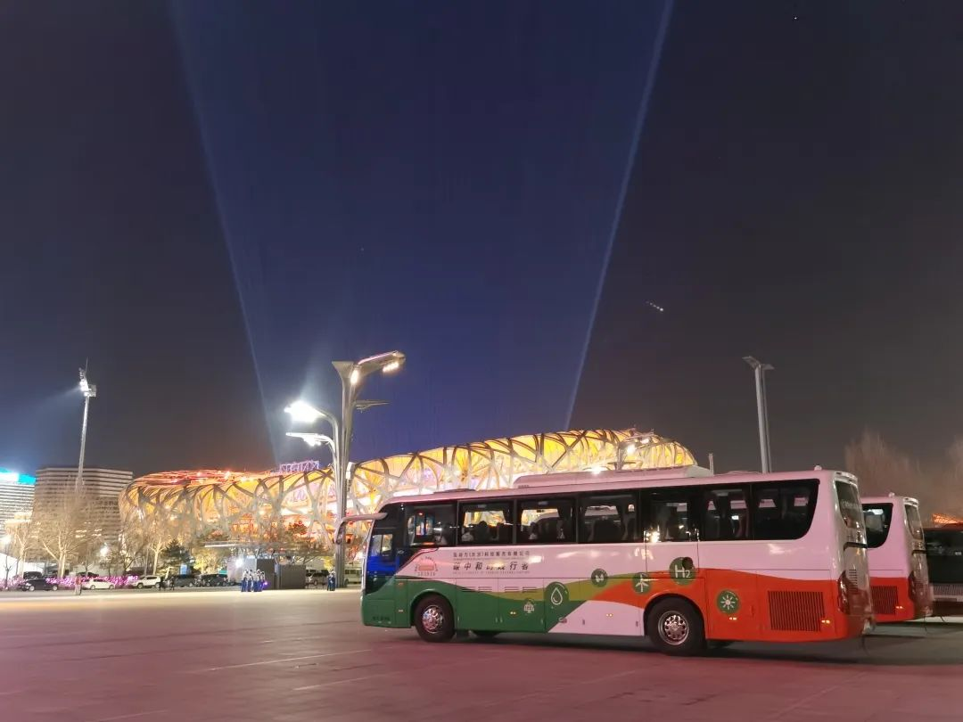 ▲搭載“氫騰”燃料電池系統的大巴車服務2022年北京冬奧會