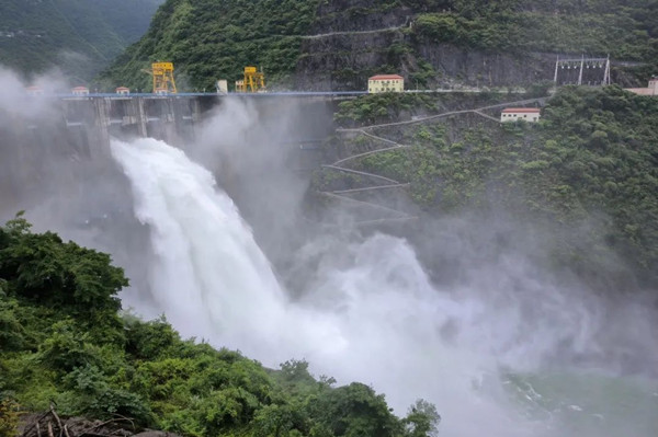 江口水電站開閘泄洪。國家電投重慶公司供圖