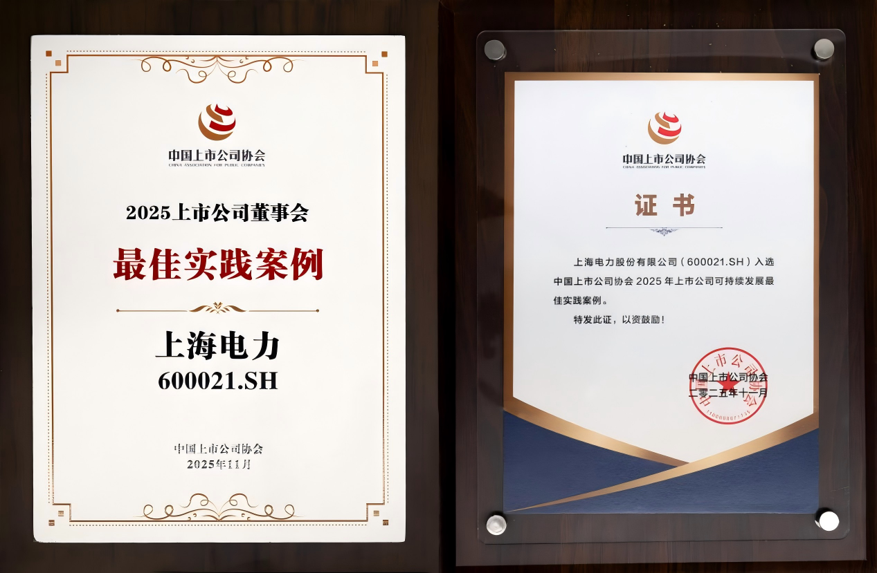 11月18日,中國上市公司協會在北京舉行2025年上市公司可持續發展大會,上海電力(股票代碼600021)入選中上協2025年上市公司“董事會最佳實踐案例”和“可持續發展最佳實踐案例”。