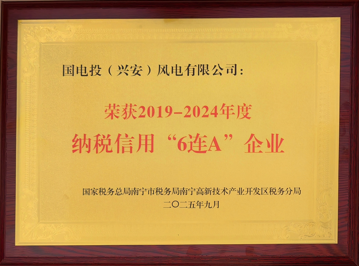 近日,國家電投集團(tuán)廣西公司興安風(fēng)電公司獲南寧市稅務(wù)局南寧高新技術(shù)產(chǎn)業(yè)開發(fā)區(qū)稅務(wù)分局頒發(fā)的2019-2024年度“納稅信用‘6連A’企業(yè)”榮譽(yù),展現(xiàn)了企業(yè)在依法納稅、誠信經(jīng)營方面的卓越表現(xiàn)。