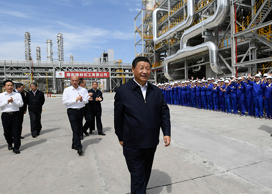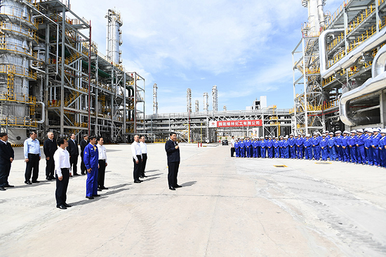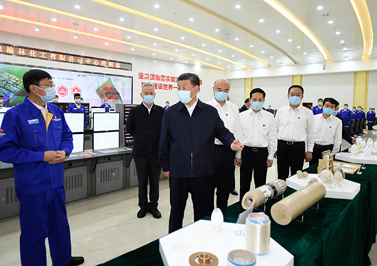 9月13日至14日,中共中央總書(shū)記、國(guó)家主席、中央軍委主席習(xí)近平在陜西省榆林市考察。這是13日上午,習(xí)近平在國(guó)家能源集團(tuán)榆林化工有限公司年產(chǎn)40萬(wàn)噸乙二醇項(xiàng)目現(xiàn)場(chǎng)考察。新華社記者 李學(xué)仁 攝