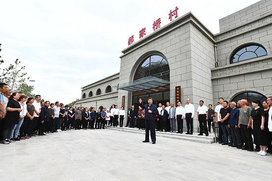 在村果蔬大棚基地,習(xí)近平仔細(xì)了解該村產(chǎn)業(yè)規(guī)劃發(fā)展情況,走進(jìn)大棚察看葡萄長(zhǎng)勢(shì)。在村互助幸福院、村衛(wèi)生站,習(xí)近平同村里的老人、醫(yī)護(hù)人員等親切交流。他指出,來(lái)到郝家橋,我深受教育和啟發(fā)。山溝溝能走出致富路、過(guò)上好日子,靠的是政策好、人努力、天幫忙。這里能做到的,其他地方也應(yīng)該能做到。重要的是深入調(diào)查研究,摸準(zhǔn)情況、吃透問(wèn)題、找到辦法、總結(jié)經(jīng)驗(yàn),持續(xù)發(fā)揮典型引領(lǐng)示范作用,建好黨支部、選好帶頭人,把基層黨組織戰(zhàn)斗堡壘作用充分發(fā)揮出來(lái)。