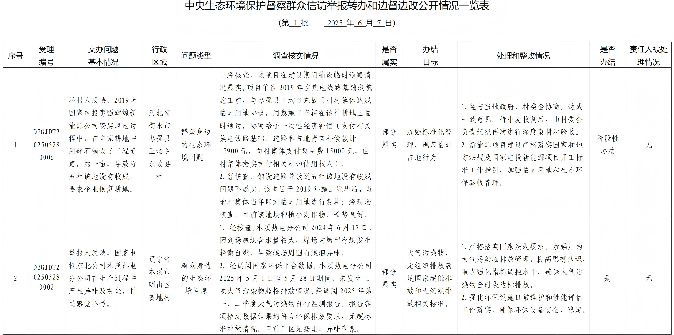中央生態(tài)環(huán)境保護(hù)督察群眾信訪舉報(bào)轉(zhuǎn)辦和邊督邊改公開情況一覽表(第一批)