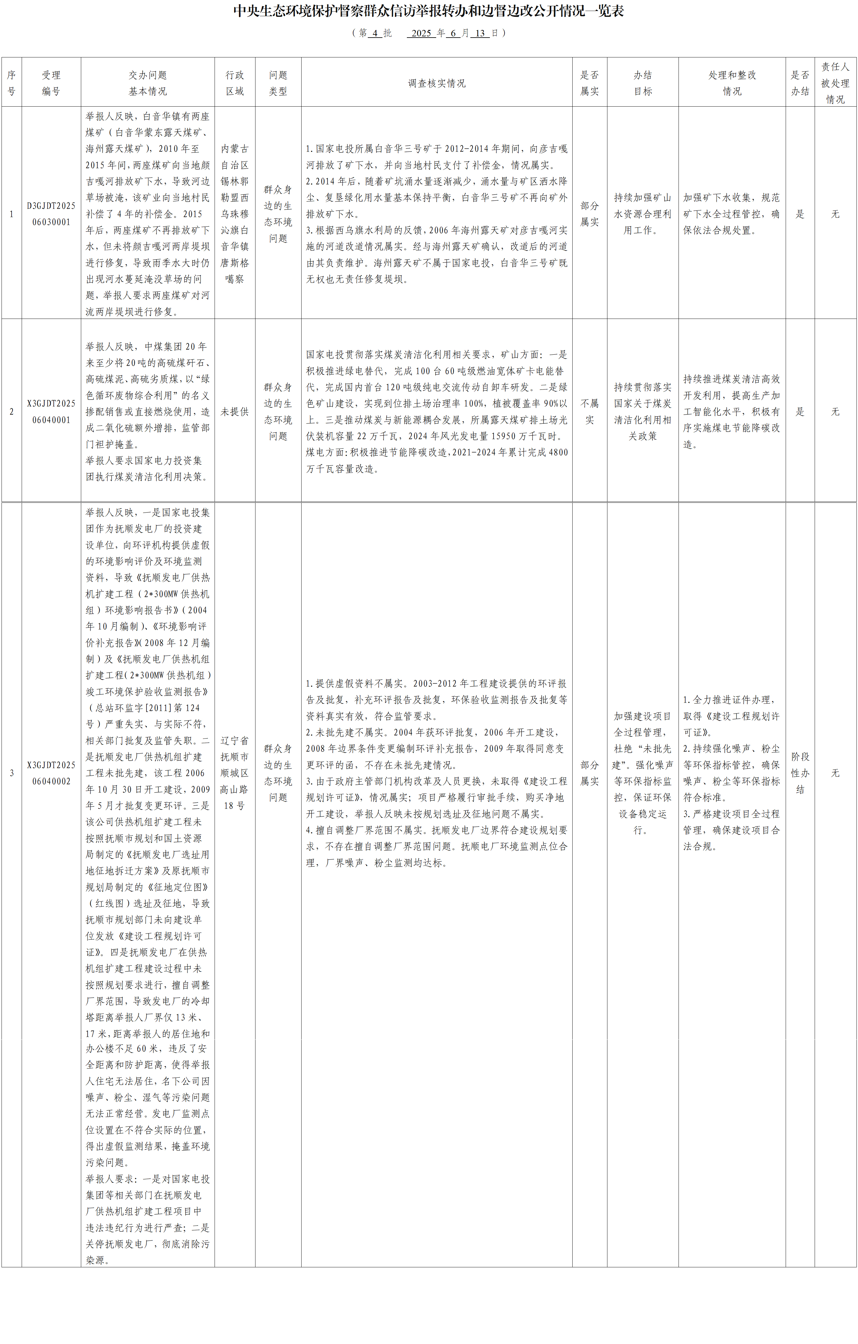 中央生態(tài)環(huán)境保護(hù)督察群眾信訪舉報轉(zhuǎn)辦和邊督邊改公開情況一覽表(第四批)