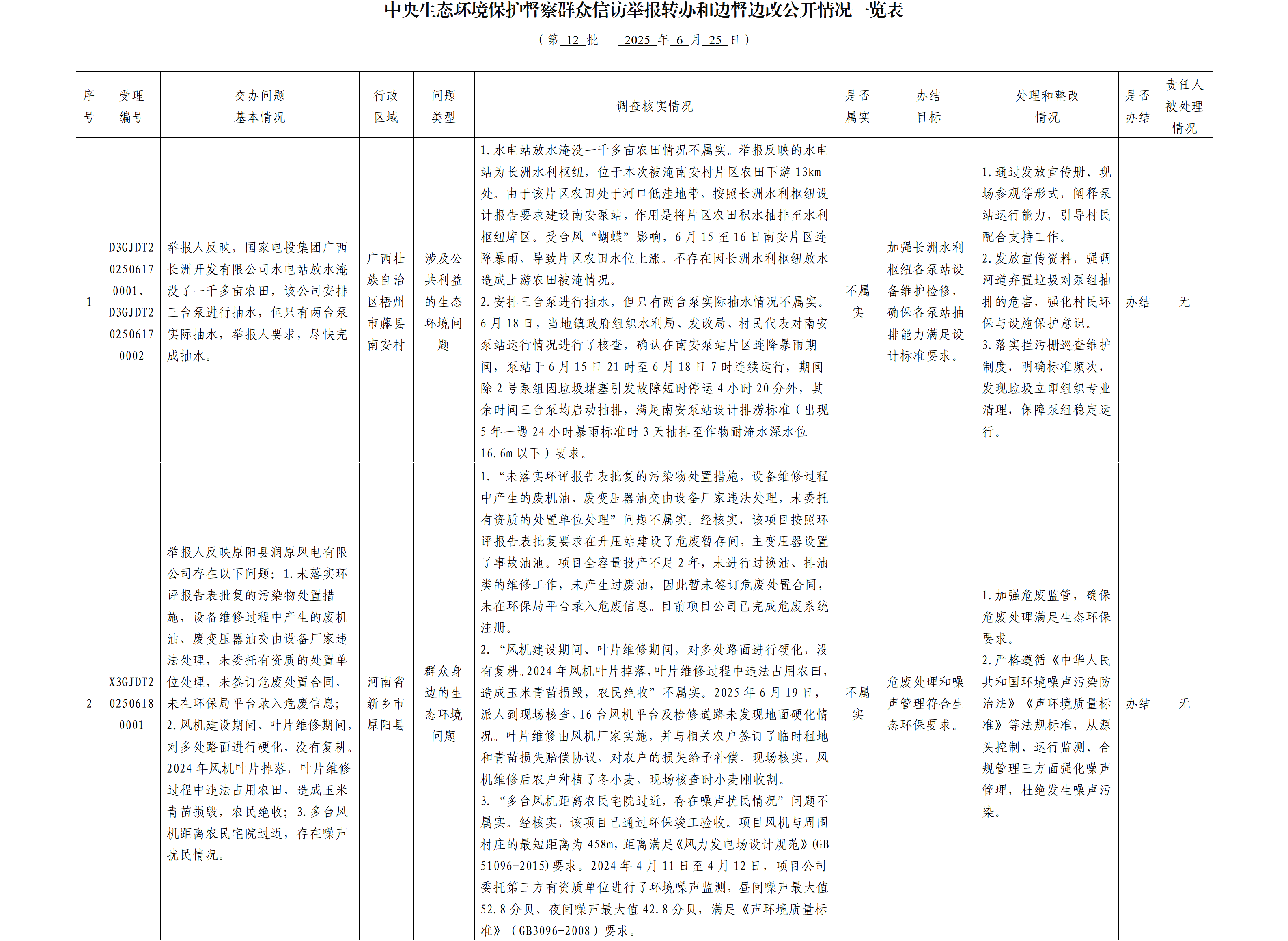 中央生態環境保護督察群眾信訪舉報轉辦和邊督邊改公開情況一覽表(第十二批)